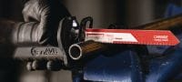- 100x ilgāks zāģēšanas mūžs – viens Hilti pārklāts griezējasmens ar titāna pārklājumu kalpo līdz pat 100 reizes ilgāk nekā bimetāla asmeņi un līdz pat divas reizes ilgāk nekā asmeņi ar cietkausējuma virsmu, nodrošinot viszemākās izmaksas par griezumu