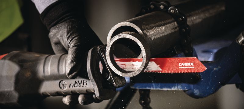 - Ātrāka stingru materiālu zāģēšana, tostarp nerūsošā tērauda, čuguna un augsti leģēta tērauda, kas biezāks par 5 mm (3/16")