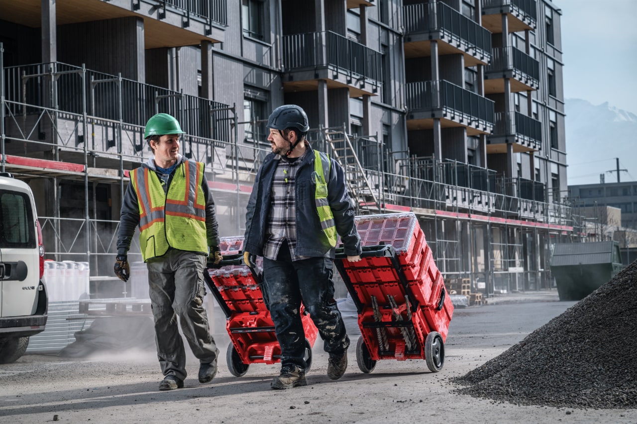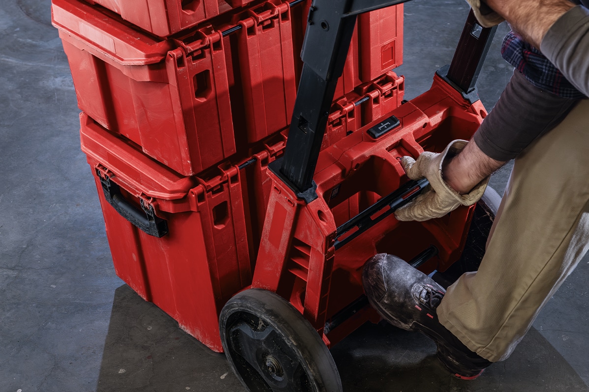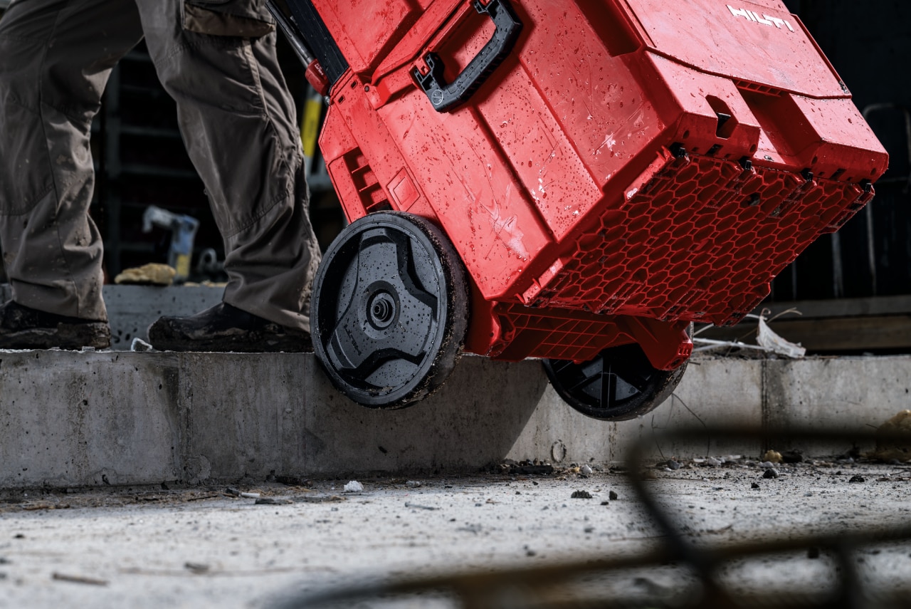 Ar īpaši lielajiem ProKit Box ratiņiem kā ratiņu pamatni varat uzglabāt un viegli pārvietot savus lielākos instrumentus un smagākos materiālus.